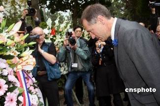 法国退伍军人部部长让-马丽·波克尔向长眠在法国的一战华工献花致意。