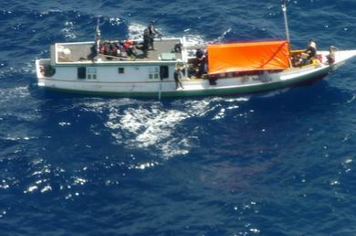 澳大利亚总理陆克文给印尼总统打电话之前,情报机关得知,这艘船正企图进入澳大利亚水域。很快,澳大利亚军方向印尼海军通告了该船所处的水域方位,那就是在苏门答腊岛同爪哇岛之间的海域。澳大利亚军方认为,印尼当局押送该船到了西爪哇地区。