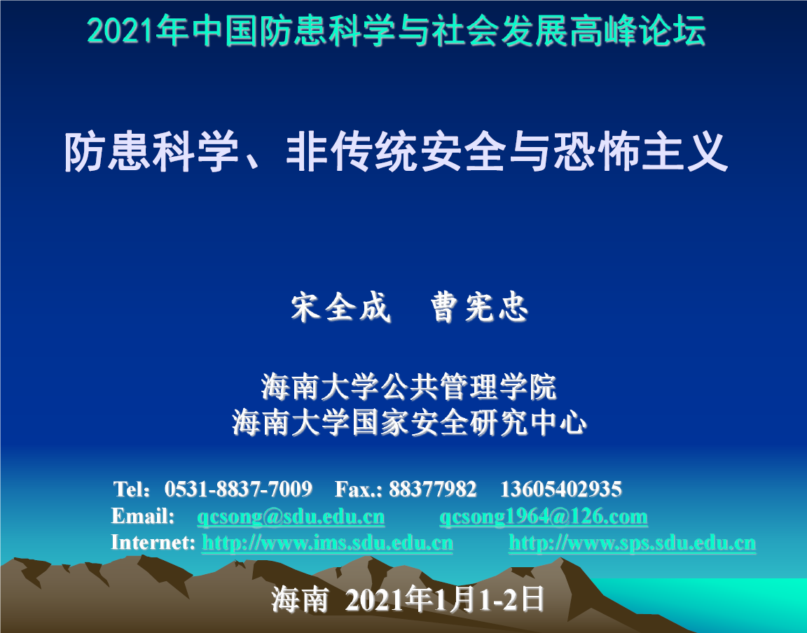2021年1月1-2日,受海南睿智防患科学研究院的邀请,海南大学公共管理学院教授、山东大学移民研究所所长、哲学与社会发展学院社会学系教授宋全成,参加了在海南大学国际学术交流中心举行的中国防患科学与社会发展高峰论坛。