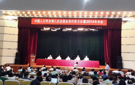 中国人口学会2014年年会的主题是“促进人口长期均衡发展”。中国人口学会名誉会长彭珮云出席,国家卫生计生委主任李斌讲话,中国人口学会第七届理事会会长张维庆致辞,国家卫生计生委副主任王培安主持会议并代表第七届理事会作组织工作报告,中国人口学会第七届理事会常务副会长翟振武作第七届理事会工作报告。会议按照中国人口学会章程,完成学会换届任务,大会选举产生了中国人口学会第八届理事会,翟振武当选中国人口学会第八届理事会会长。